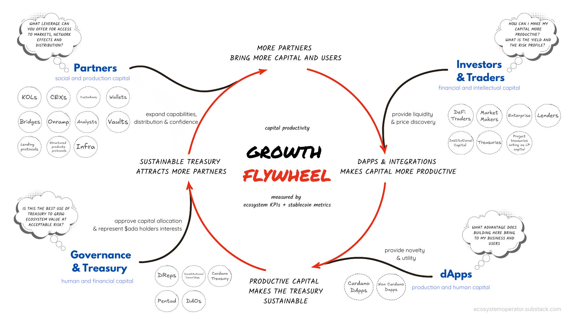 The path to growth must be visible to all! The Ecosystem Growth Flywheel shows how capital becomes productive.