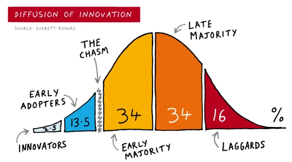 As adoption progresses, priorities shift toward usability, reliability and distribution. The early majority does not tolerate the same complexity as explorers.